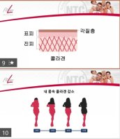 피부는 표피, 진피층, 피하지방으로 이루어져 있다. 콜라겐은 특히 피부 진피층의 약 70~80%를 차지하고 있어, 피부 탄력을 높이고 보습력을 높이는데 중요한 역할을 한다. 전자현미경으로 피부를 살펴보면 콜라겐은 그물망 형태의 섬유질로 이루어져 있다. 건축에 비유하면 건물의 뼈대, 즉 골조 역할을 하는 것이다. 따라서 콜라겐이 부족하면 피부는 밑으로 쳐질 수밖에 없다.